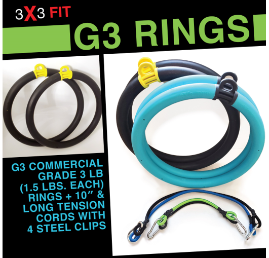 - 1 – Set of Weighted 3X3FIT G3 Rings (Your choice Black or Turquois (1.5 lbs. each) High Quality Construction Made in the USA (See image of black rings below)